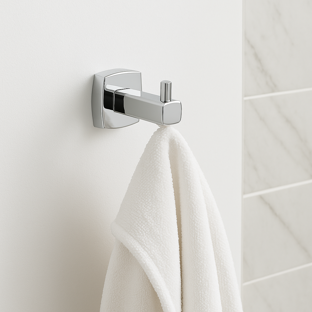 Minimaliste, fonctionnel et résolument moderne, ce crochet mural chromé s’intègre avec élégance dans toutes les salles de bain au style épuré. Grâce à sa fixation carrée et son design compact, il offre une solution discrète pour suspendre serviettes, peignoirs ou accessoires du quotidien. Sa finition brillante et sa structure en métal résistant à l’humidité en font un choix à la fois pratique et durable. À installer seul ou en duo pour structurer l’espace avec sobriété.