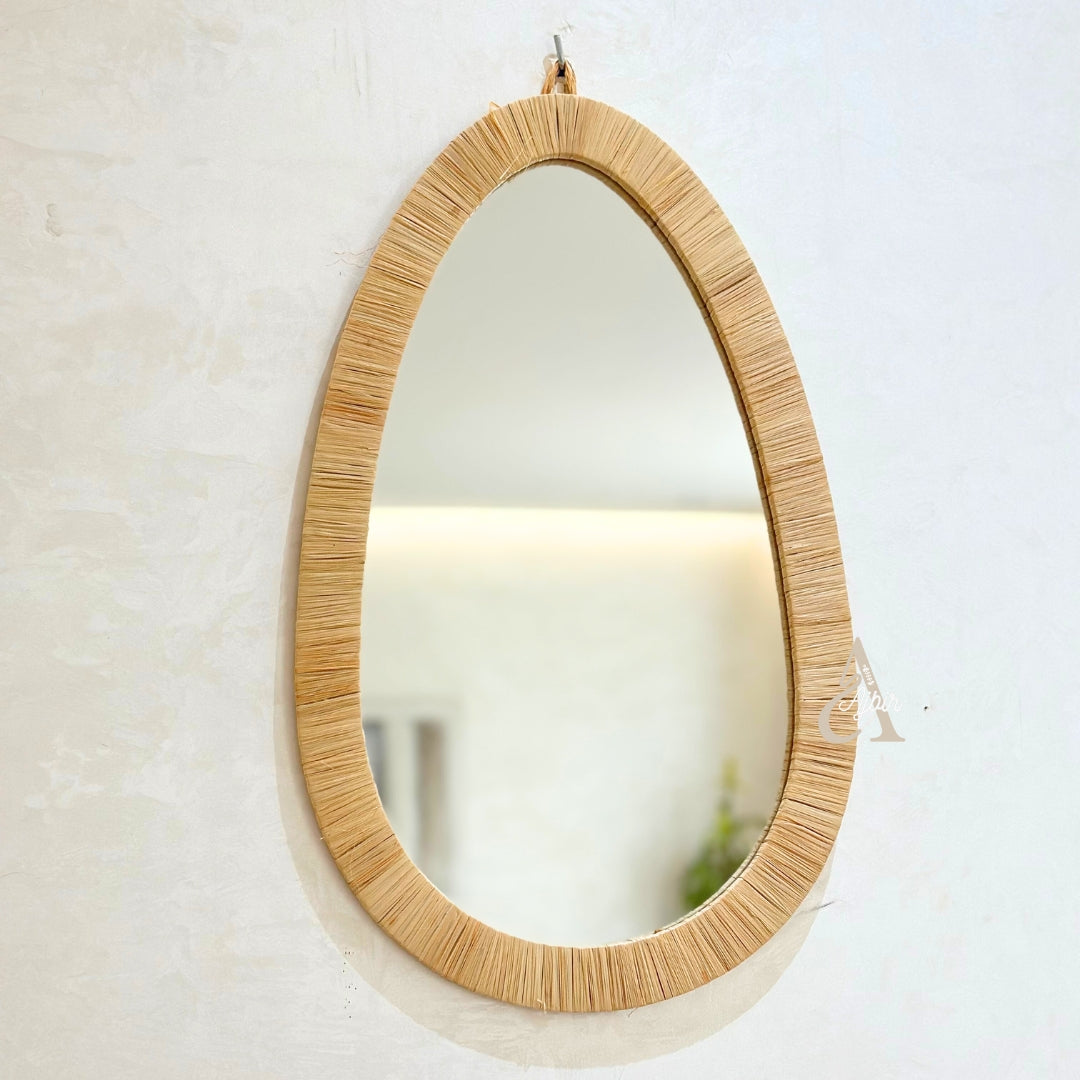 Ce miroir mural ovale au cadre en osier tressé est une pièce artisanale authentique qui apporte une touche naturelle et chaleureuse à tout intérieur. Réalisé à la main par des artisans marocains, chaque modèle est unique, avec un tressage d’osier qui reflète le savoir-faire traditionnel. Disponible en trois formats pour s’adapter à toutes les envies déco : seul ou en accumulation, dans une entrée, une chambre ou une salle de bain.