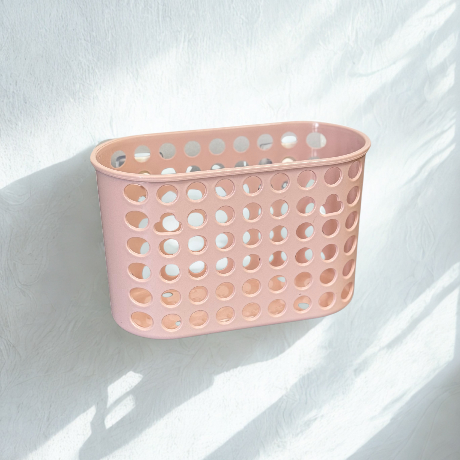 Panier de Rangement Mural en Plastique Rose – Fixation Autocollante
