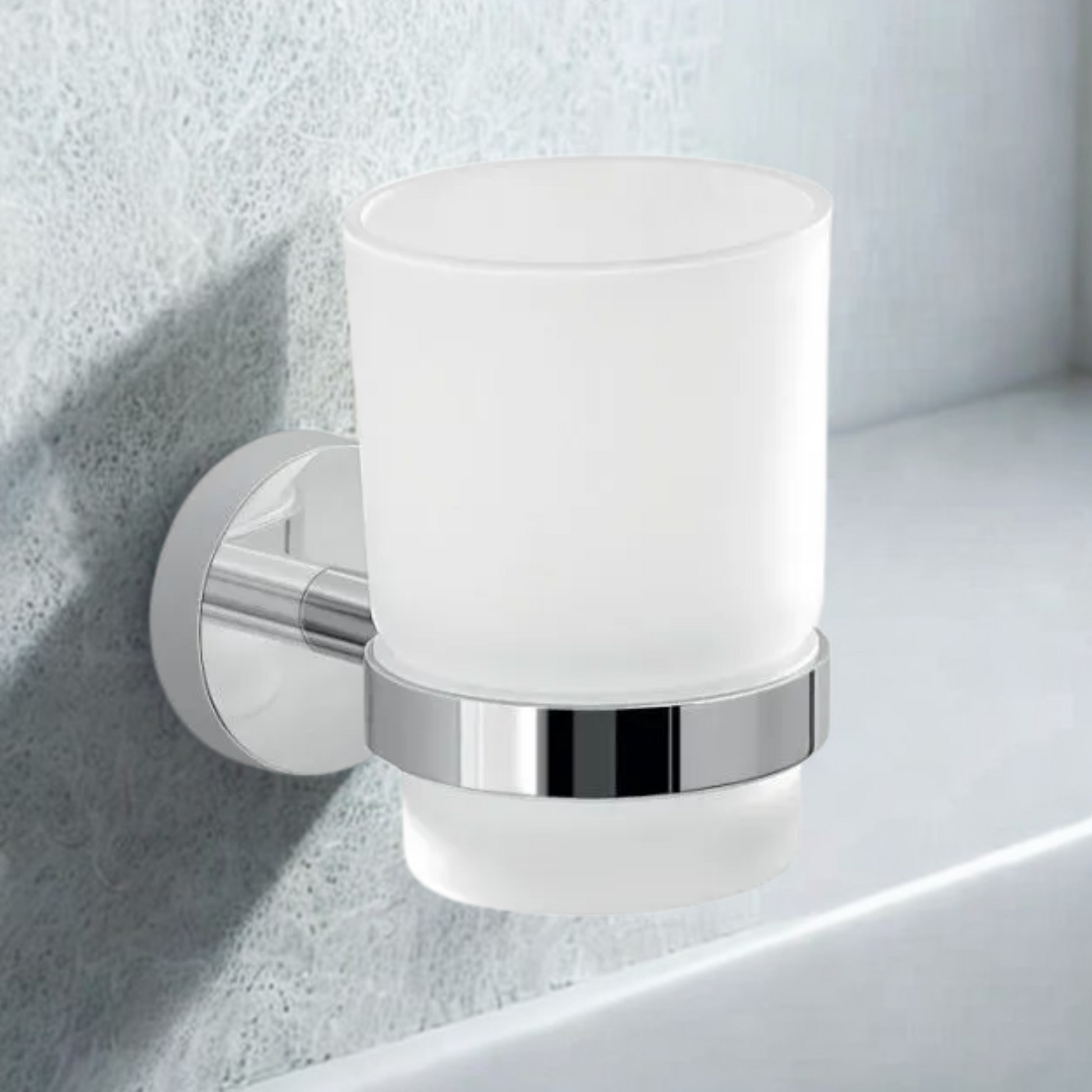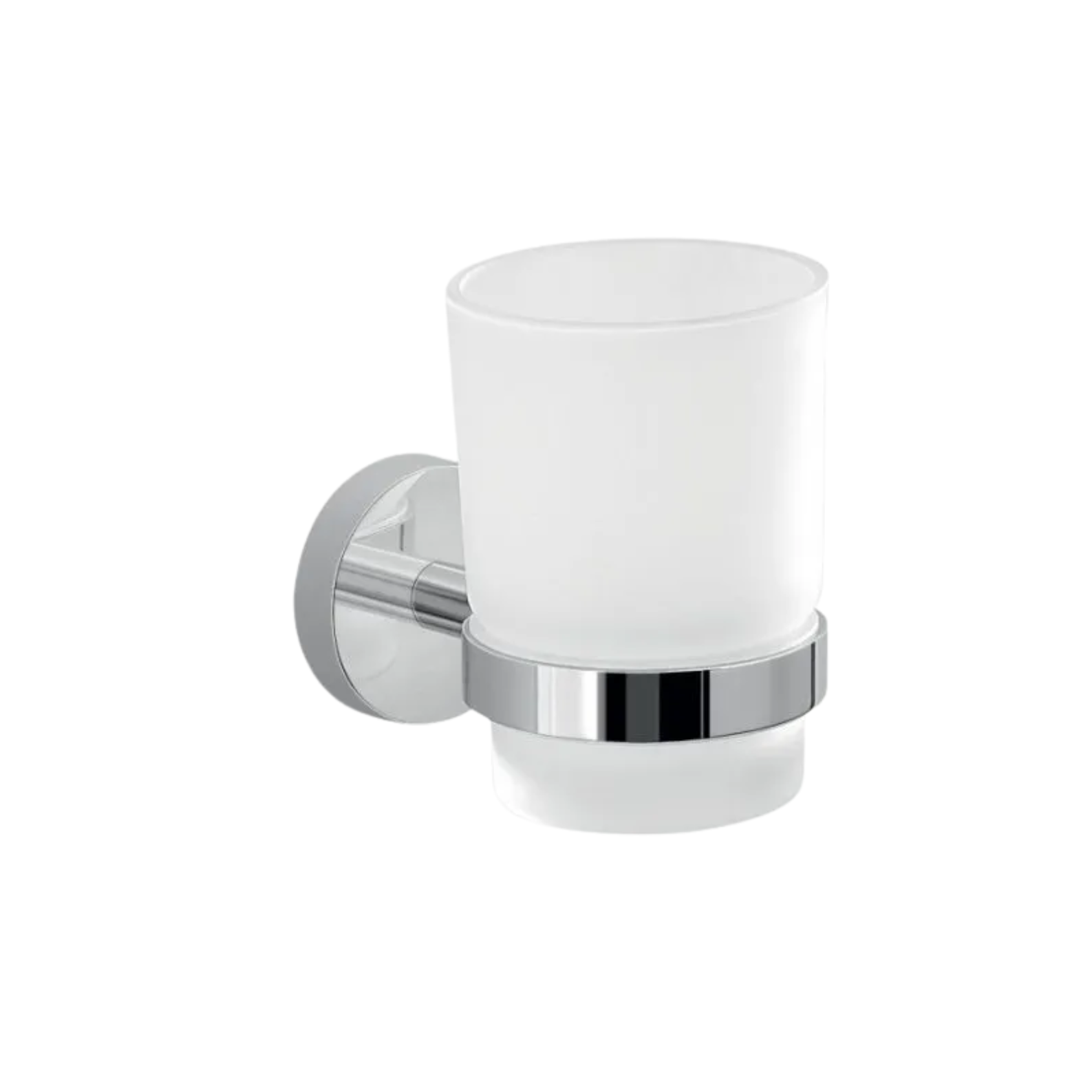 Porte-gobelet mural rond en verre dépoli et finition chrome