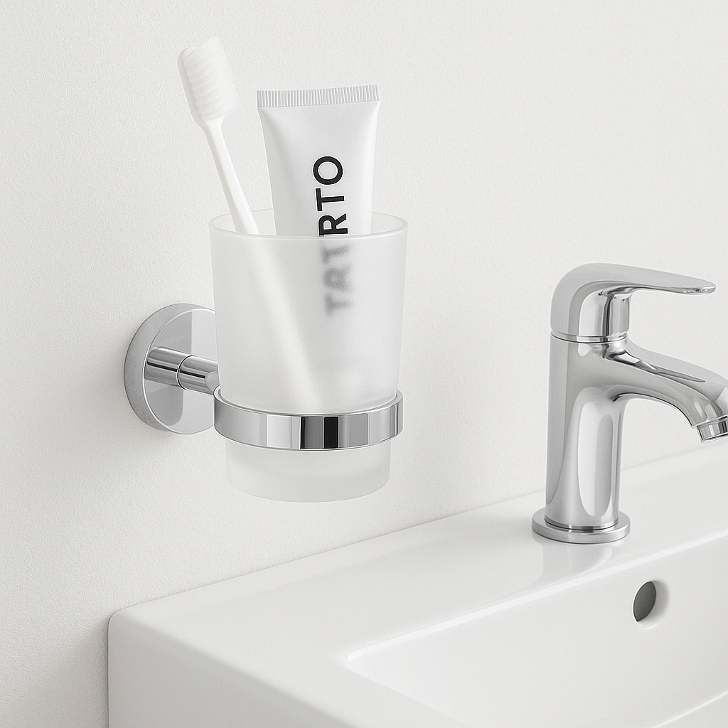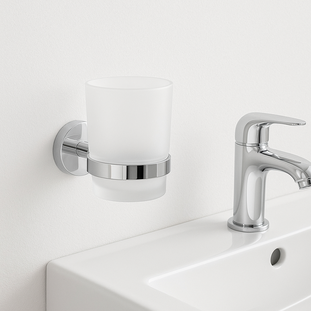 Un accessoire discret mais essentiel pour une salle de bain moderne. Ce porte-gobelet mural allie verre dépoli haut de gamme et support en laiton finition chrome poli pour un rendu à la fois raffiné et minimaliste. Idéal pour ranger brosse à dents, dentifrice ou petits accessoires, il optimise l’espace tout en sublimant le coin lavabo.