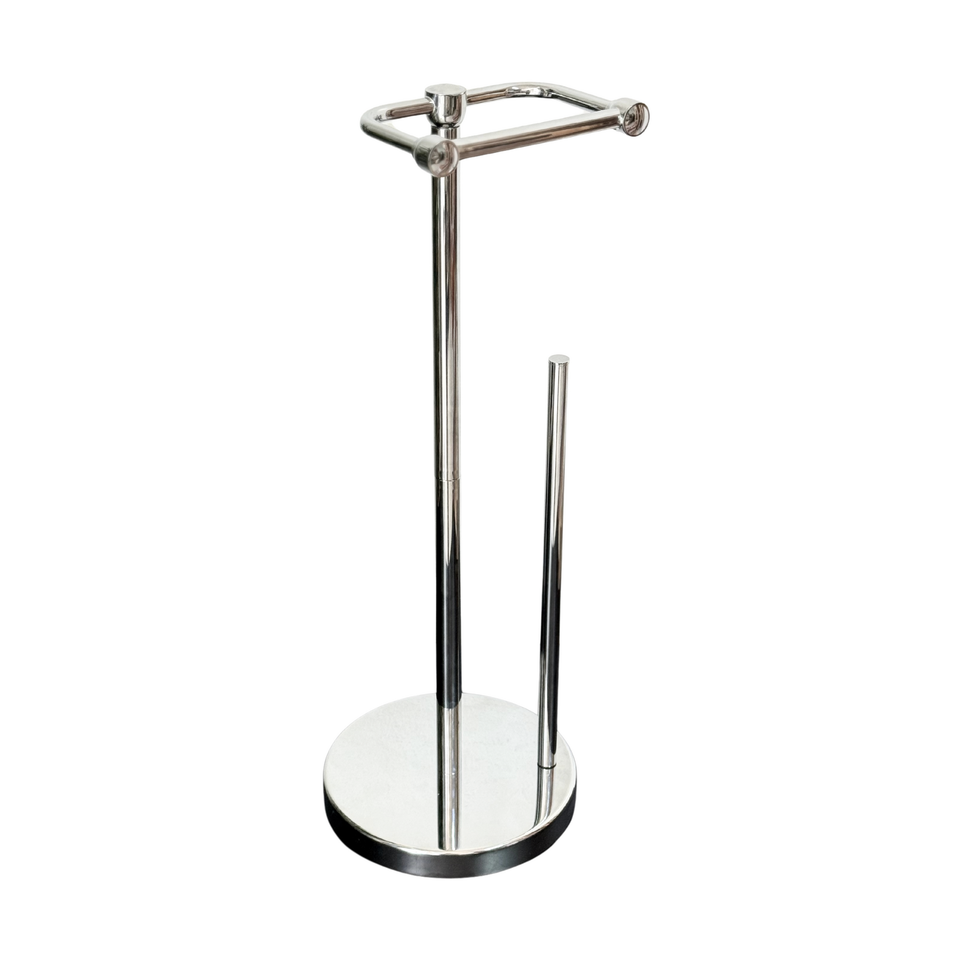 Apportez une touche d’élégance et de praticité à vos toilettes avec ce porte-papier WC sur pied en acier inoxydable chromé. Idéal pour les salles de bain modernes, ce support 2-en-1 combine un distributeur de papier hygiénique en hauteur et un rangement intégré pour rouleaux de rechange, tout en conservant un design minimaliste et raffiné.