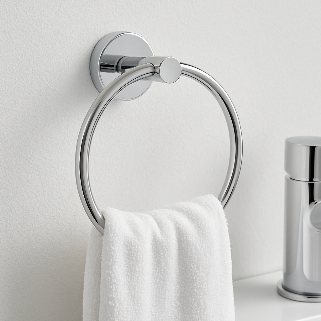 Ce porte-serviette mural en anneau chromé est l’allié discret et design des salles de bain modernes. Grâce à sa forme circulaire et sa finition brillante, il s’intègre harmonieusement à tout espace au style épuré. Idéal pour suspendre une serviette à main ou un gant de toilette, il offre une solution de rangement pratique tout en apportant une touche contemporaine à votre décoration murale. Sa fixation murale solide garantit une parfaite stabilité au quotidien.