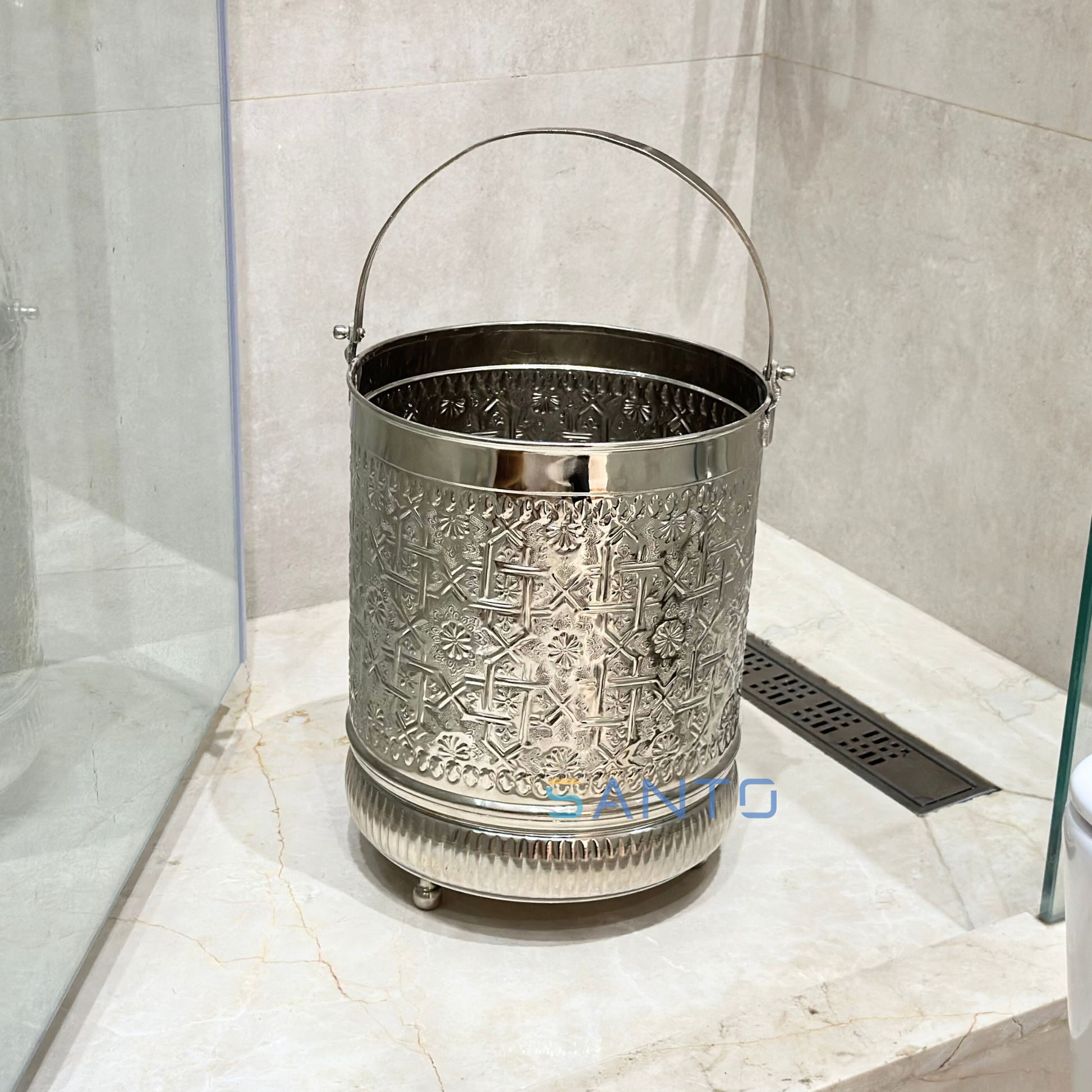 Seau hammam artisanal en laiton argenté