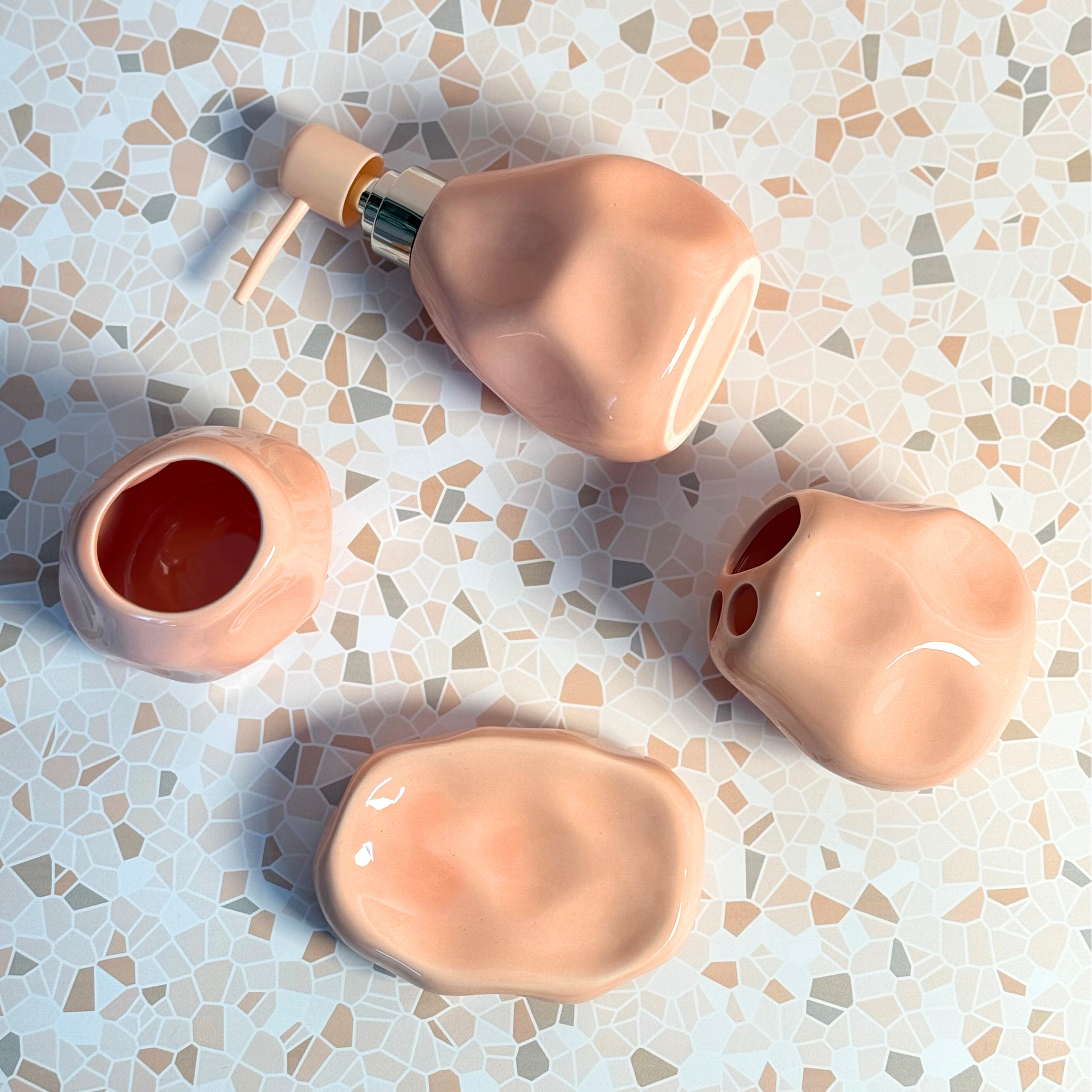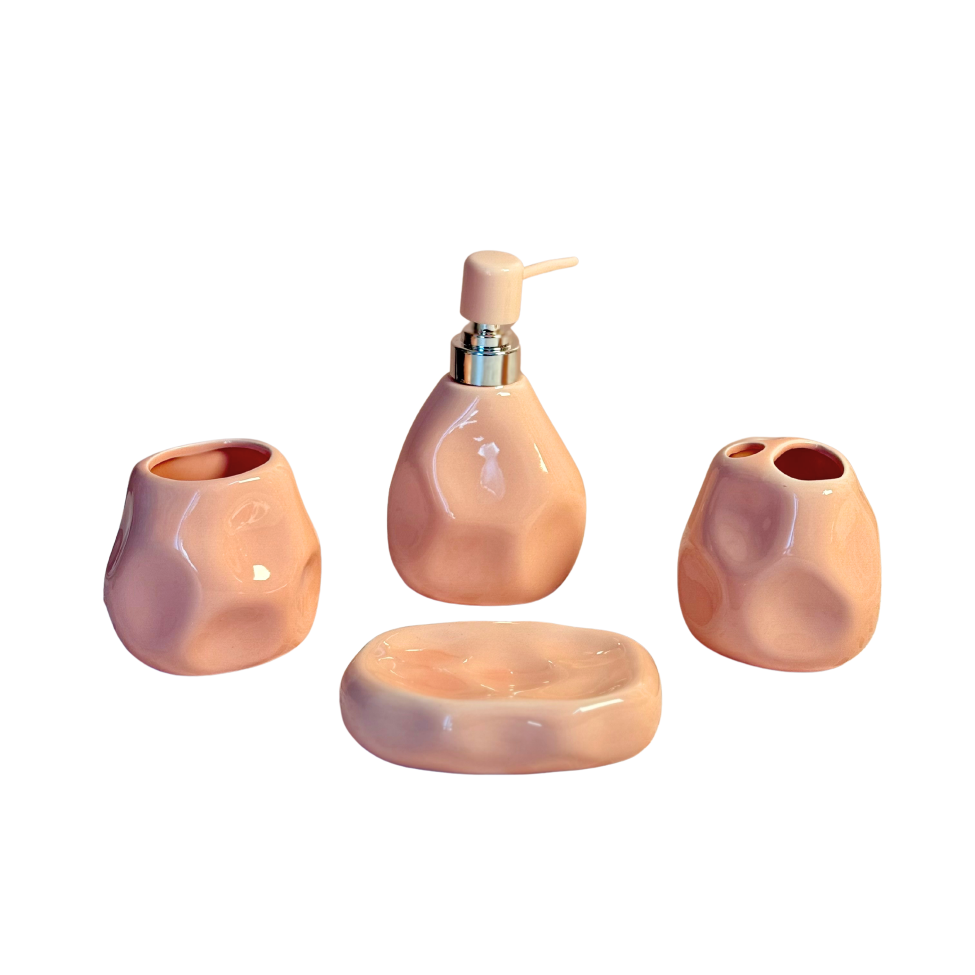 Ajoutez une touche de douceur et de modernité à votre salle de bain avec ce set complet d’accessoires en céramique. Disponible en deux coloris tendance : rose et beige doux, ce lot de 4 pièces allie esthétique organique et praticité au quotidien.