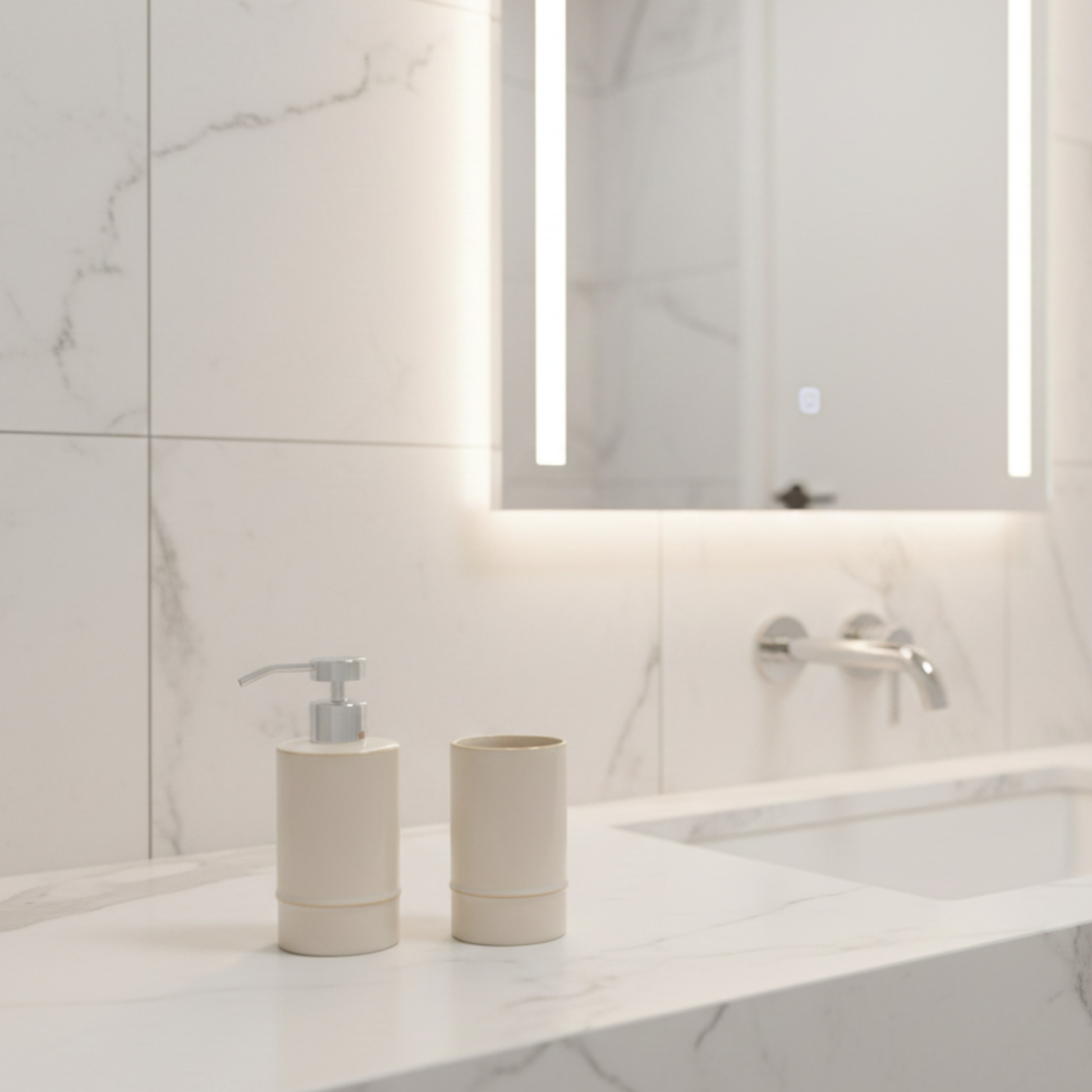 Fabriqué en céramique de qualité, ce duo s’intègre parfaitement dans les salles de bain modernes, naturelles ou Japandi. Son style intemporel apporte une touche raffinée tout en restant sobre.