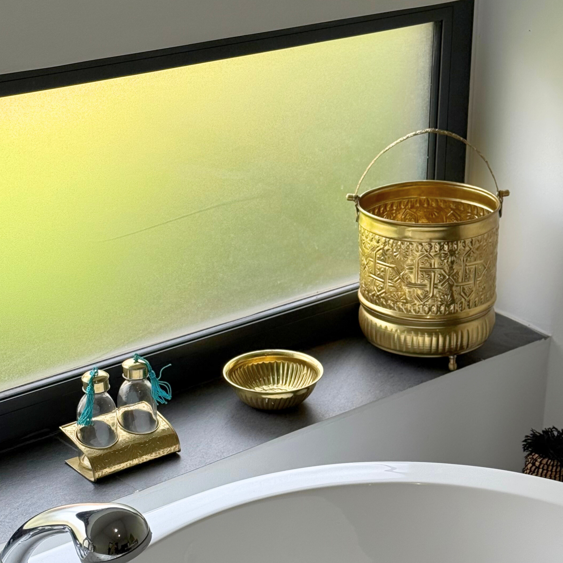 Ajoutez une touche de raffinement à vos rituels bien-être avec cette petite tassa en laiton doré martelé, inspirée des traditions des hammams marocains. Façonnée à la main, cette coupe élégante est idéale pour verser de l’eau, rincer le savon noir, ou même comme accessoire décoratif dans une salle de bain aux accents orientaux.